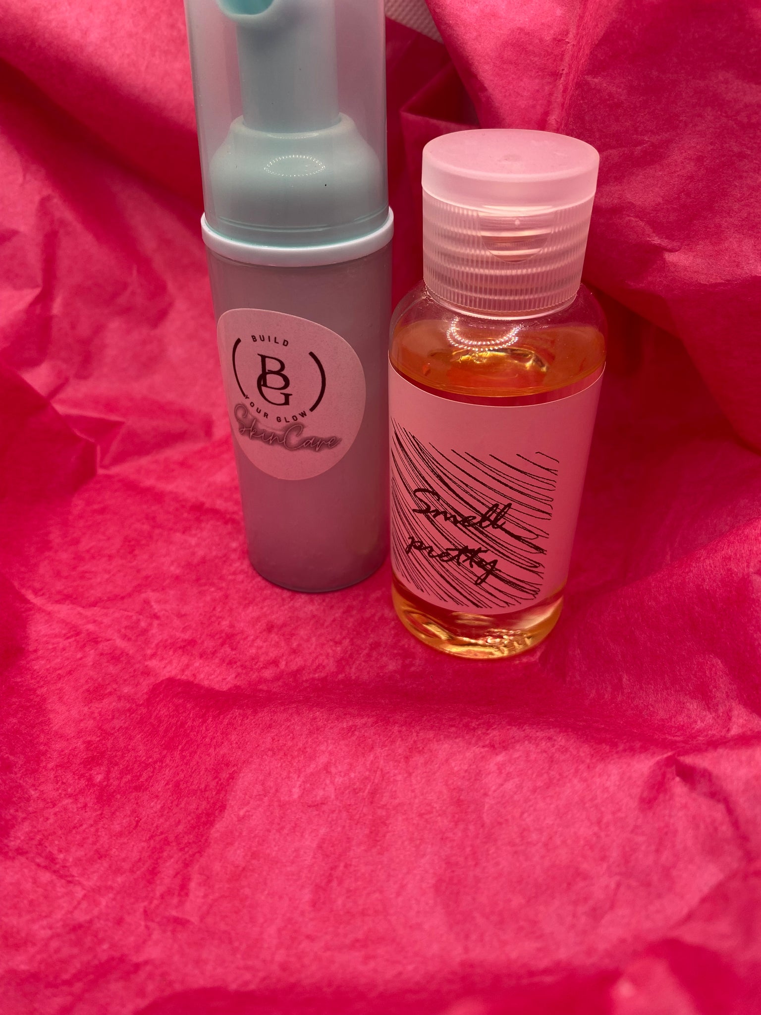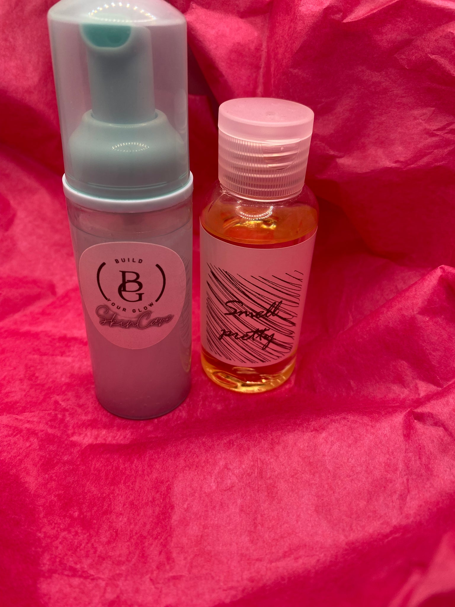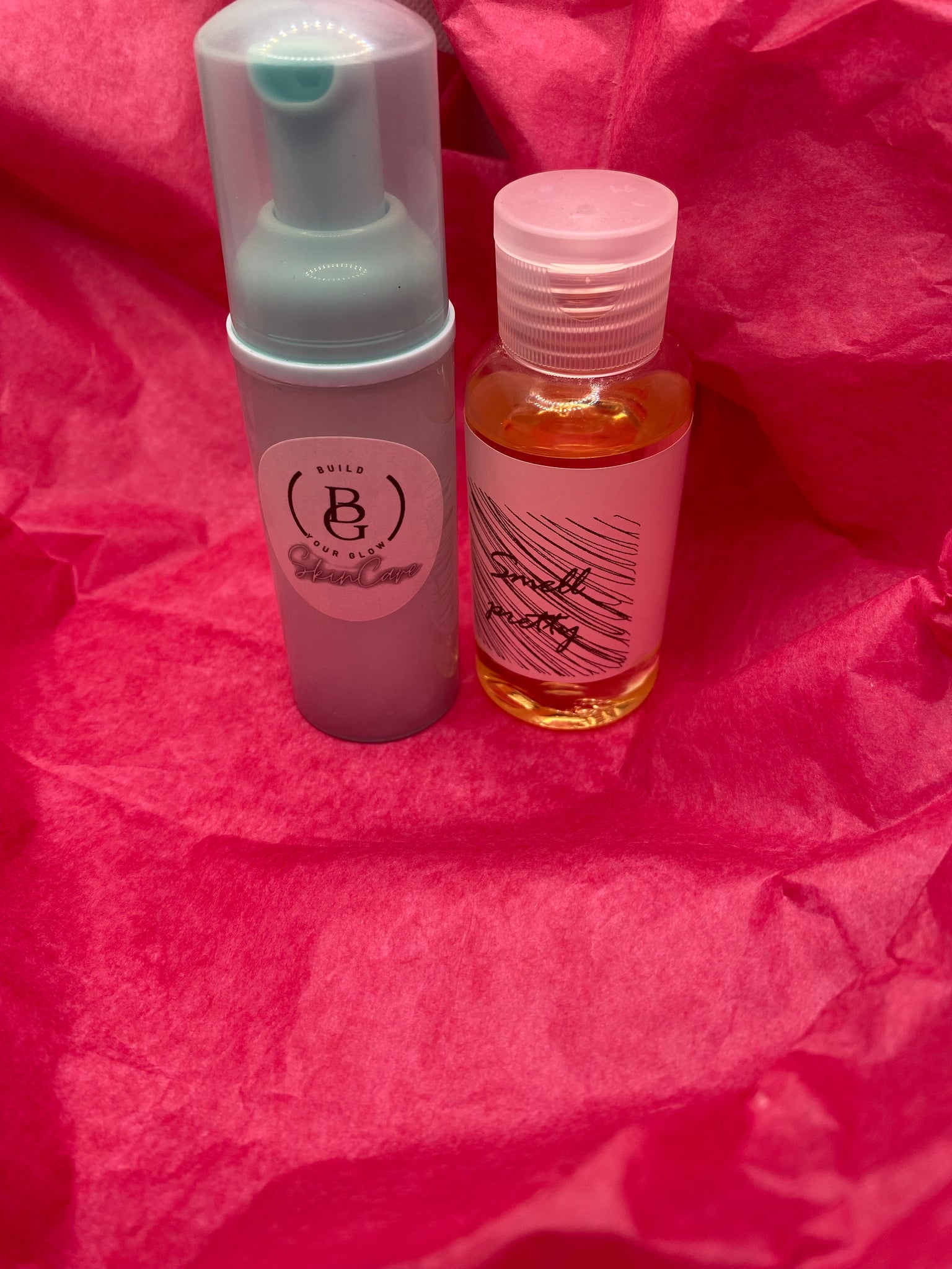 Our mask glow and smell pretty body oil.